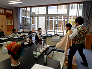 先生2人をモデルに実際に仕事を見せる事で仕事の楽しさや難しさ、コミニュケーションの大切さなどを伝えました。子供たちはとても熱心に聞いてくれて