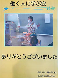 2月9日(木)犬山東部中学校 「働く人に学ぶ会」Information